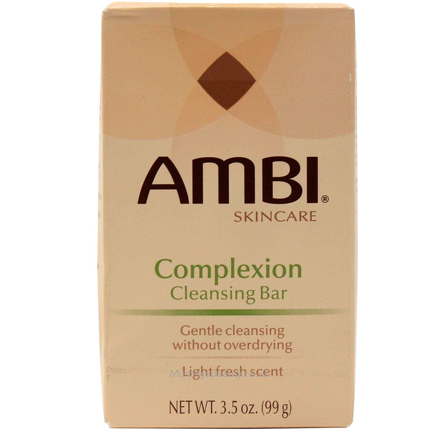Ambi Complexion Cleansing Bar is a mild soap that gently cleanses skin without overdrying. It is enriched with proven cleansing agents to effectively wash away surface impurities and makeup for soft, clean skin. Its rich clean-rinsing lather also has a light fresh scent.