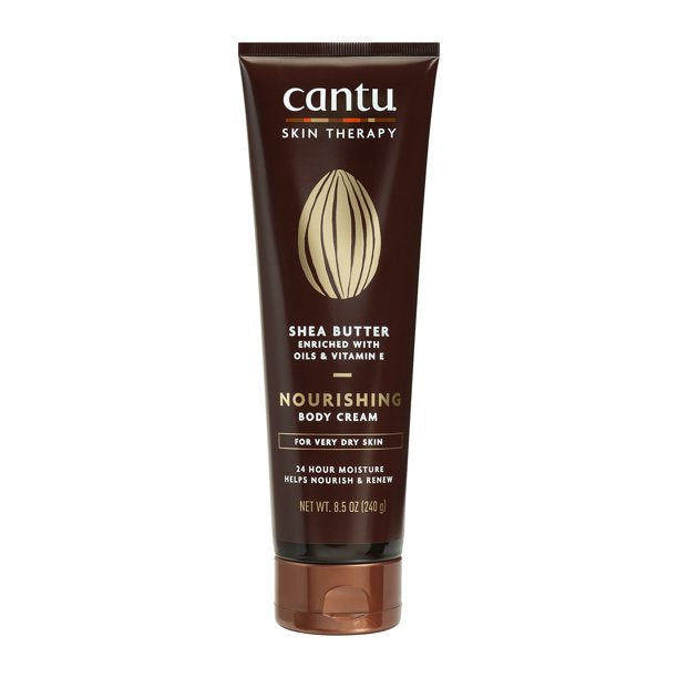 The Cantu Skin Therapy Nourishing Shea Butter Body Cream penetrates very dry skin to provide deep, long-lasting moisture with each use. Crafted with naturally nourishing shea butter and a unique blend of cocoa butter, mango butter, and Vitamin E, this non-greasy formula nourishes to reveal smoother, softer skin. Experience intense moisture as this body cream protects the skin’s natural oils and keeps it soft to the touch. Wrap your skin in subtle notes of orange, shea, and vanilla.