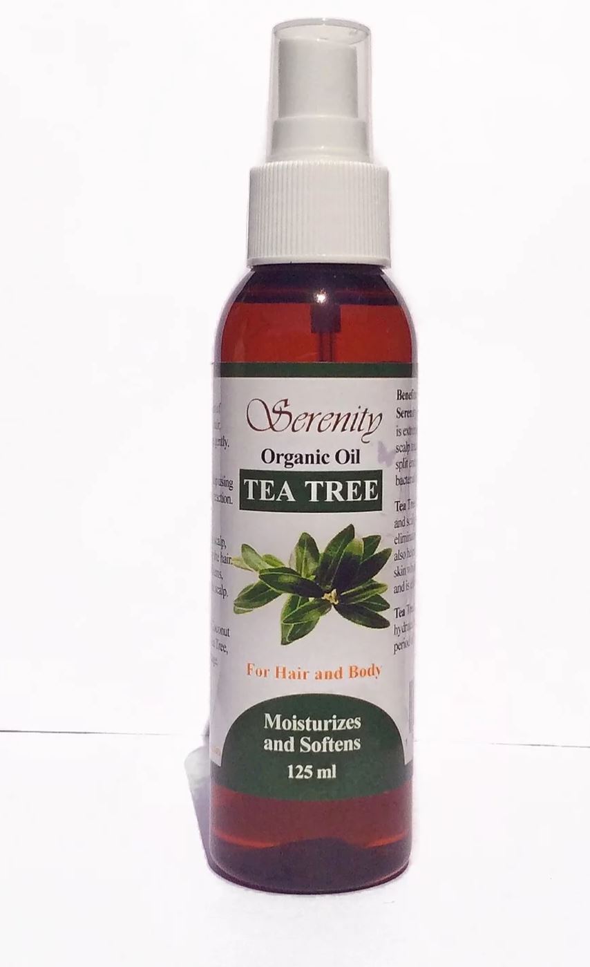 USE: Apply a generous amount of Serenity Organic Tea Tree Oil to hair, scalp and body. Massage gently. Do not rinse out. For external use only. Stop using if any sign of an allergic reaction.